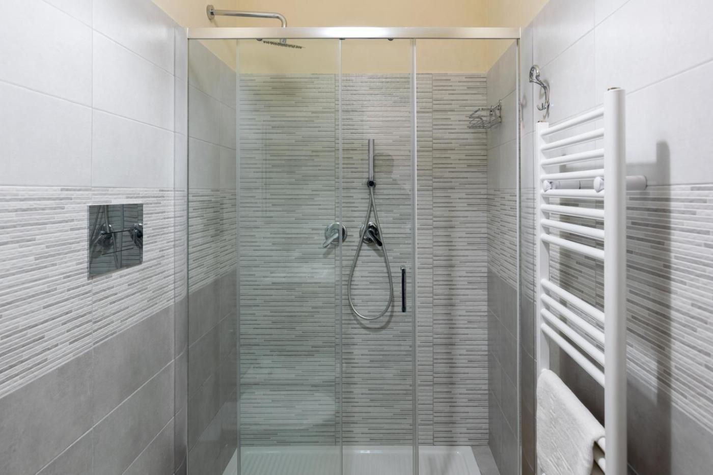 Camera Tripla Deluxe. Providing free toiletries and bathrobes, this triple room includes a private bathroom with a shower, a bidet and a hairdryer. This triple room is air-conditioned and features a flat-screen TV, a private entrance, a tea and coffee maker and a wardrobe.