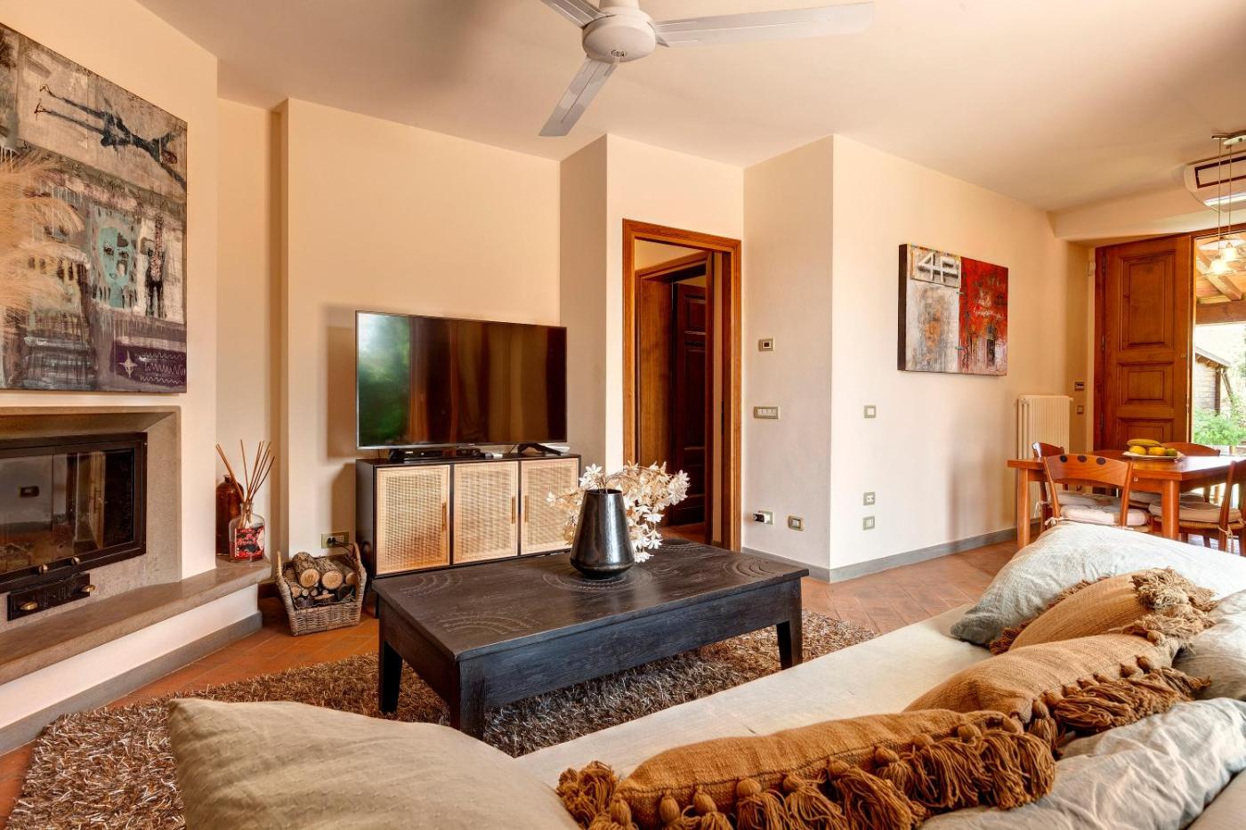 Villa con 2 Camere da Letto. This villas standout features are the pool with a view and fireplace. Boasting a private entrance, this air-conditioned villa includes 1 living room, 2 separate bedrooms and 1 bathroom with a shower and a bidet. Guests will find a stovetop, a refrigerator, a dishwasher and kitchenware in the well-fitted kitchen. The villa also features a barbecue. The villa offers a washing machine, a coffee machine, a seating area, a flat-screen TV with streaming services, as well as garden views. The unit has 3 beds. ;
