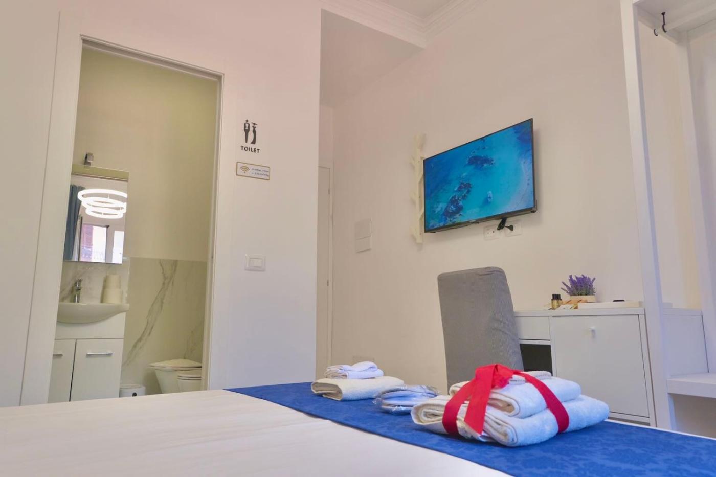 Camera Matrimoniale con Bagno Privato. Camera matrimoniale dotata di aria condizionata,per la preparazione di tè e caffè, terrazza con vista sulla città e bagno privato con vasca. L’alloggio dispone di 1 letto.
