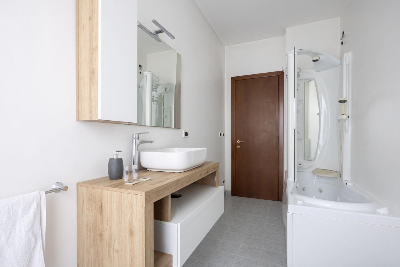 Camera Tripla. This triple room features a hot tub. Guests can make meals in the kitchen that has a stovetop, a refrigerator, a dishwasher and kitchenware. The triple room features air conditioning, a coffee machine, a terrace with garden views as well as a shared bathroom boasting a bath. The unit has 3 beds. ;