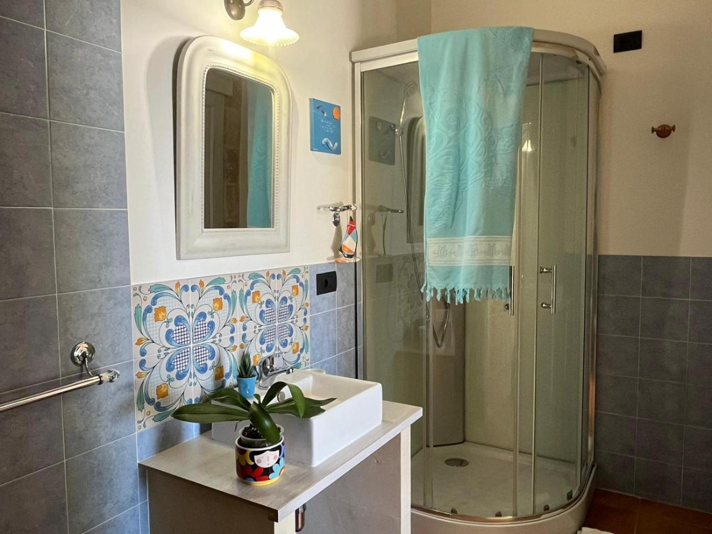Camera Matrimoniale con Vista Giardino. The double room features air conditioning, a private entrance, as well as a private bathroom boasting a shower and a bidet. Among the room amenities are a wardrobe, a barbecue, a tiled floor as well as a patio and garden views. The unit has 1 bed. ;