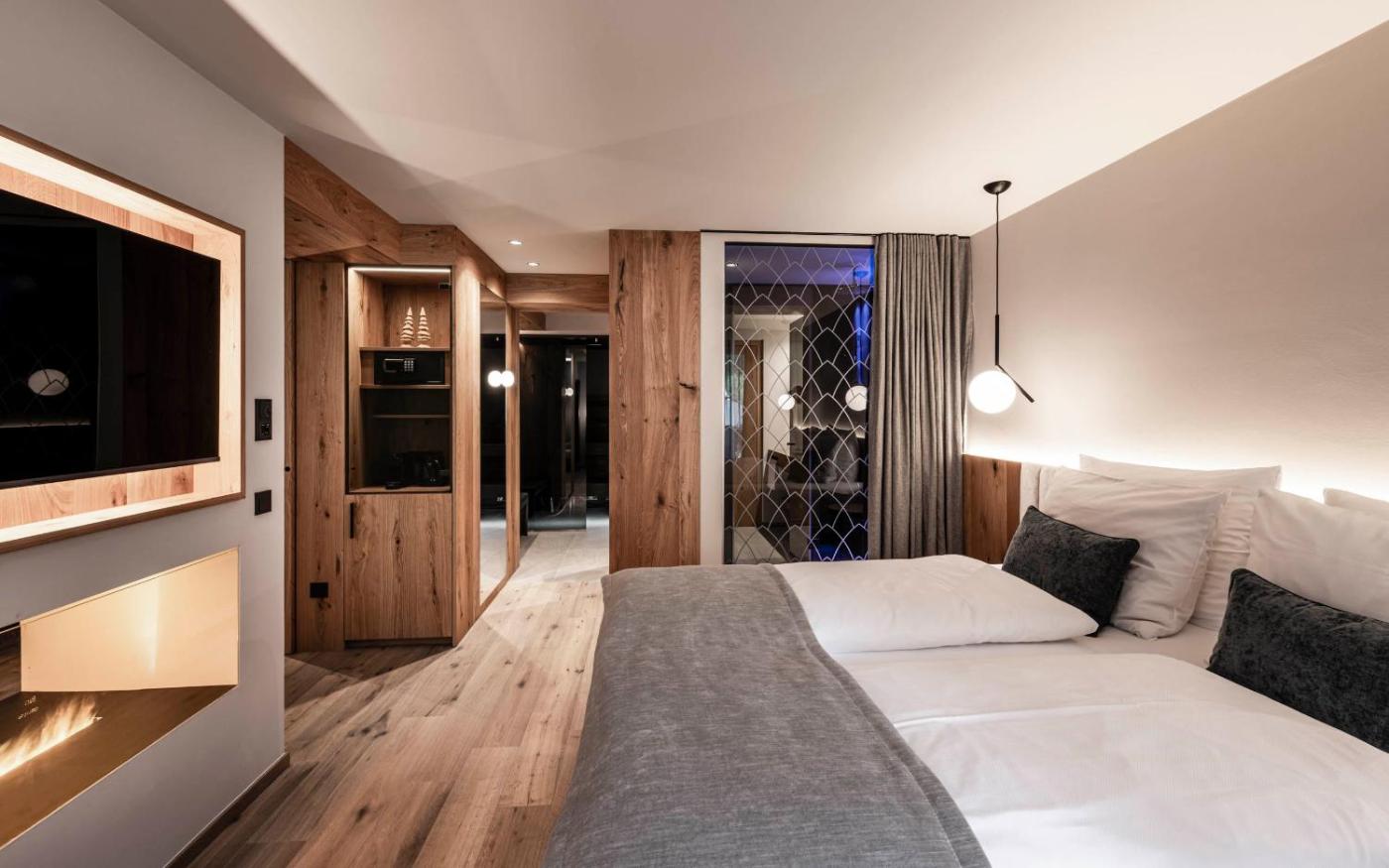 Le calorose e accoglienti camere del BAD MOOS - Aqua Spa Resort sono dotate di comfort moderni, tra cui una TV satellitare. Alcune sistemazioni dispongono di camini autentici e tutte includono un balcone con una splendida vista panoramica. Alcuni alloggi sono situati nel residence a 3 stelle dellhotel.